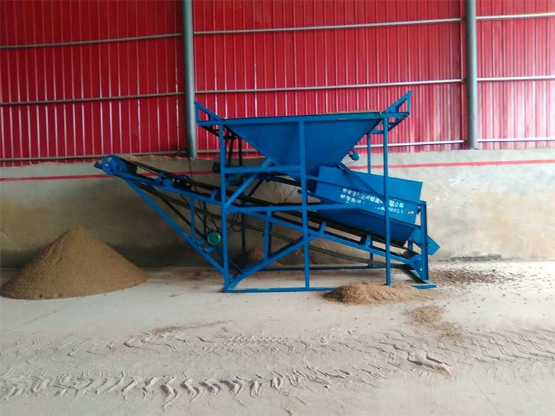 整個設(shè)備由原料儲料斗、原料供料皮帶機、平置篩網(wǎng)、成品砂堆料皮帶、棄石出料槽等組成,設(shè)備通電運轉(zhuǎn)后由裝載機將原料裝入大容量儲料斗,原料經(jīng)由供料皮帶投入到平置篩筒,旋轉(zhuǎn)的篩筒帶動原料在筒內(nèi)葉片的推擠、翻滾下形成原料在篩網(wǎng)面滑滾的人工篩砂效果,篩出的成品砂通過集料斗落在成品砂皮帶上,同時被皮帶提升落下呈成品料堆、或直接落入儲料斗,整個過程連續(xù)且物料分級清楚。